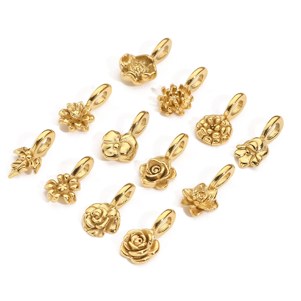 DIY 3D Stainless Steel Vacuum-Plated Flower Pendant For December Birthdays